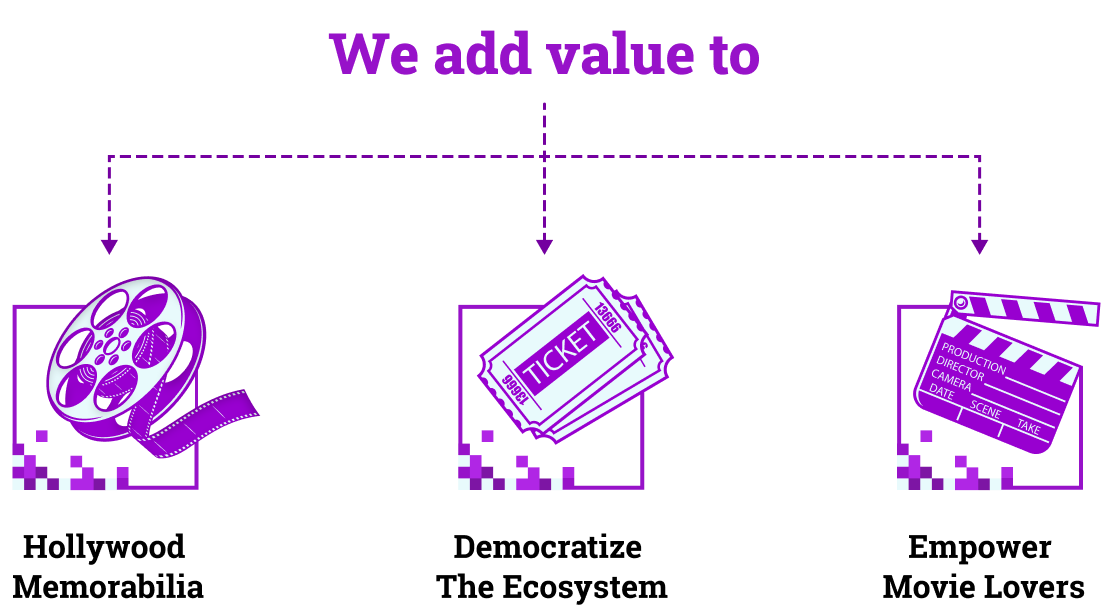 The Meta Hollywood (MH) NFT Community proposes to build a platform to gather both the creators and fans, facilitating the interactions between them, pulling all movie-lovers, studios, producers, and creators closer through memorabilia, physical and digital experiences, and the use of NFT technology. A community like no other that has the power to enable studios, creators and fans to create unique opportunities.